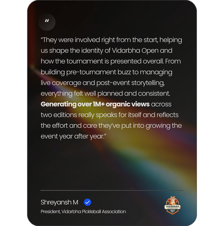 We approach events as experiences, not just timelines. From pre-event buzz to real-time coverage and post-event storytelling, our research-led, personalized strategies are designed to build anticipation, capture energy, and extend the impact of every event far beyond the venue.